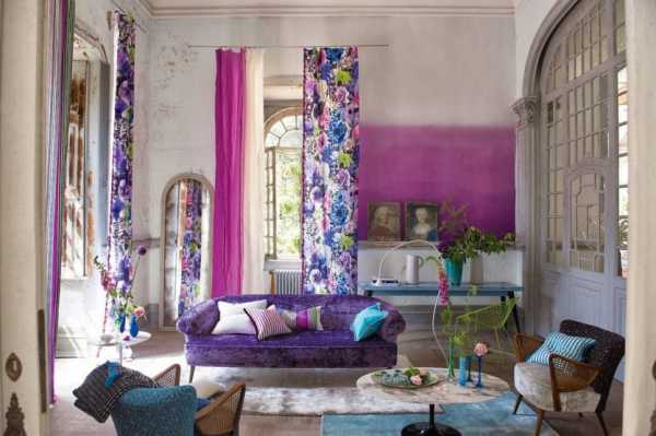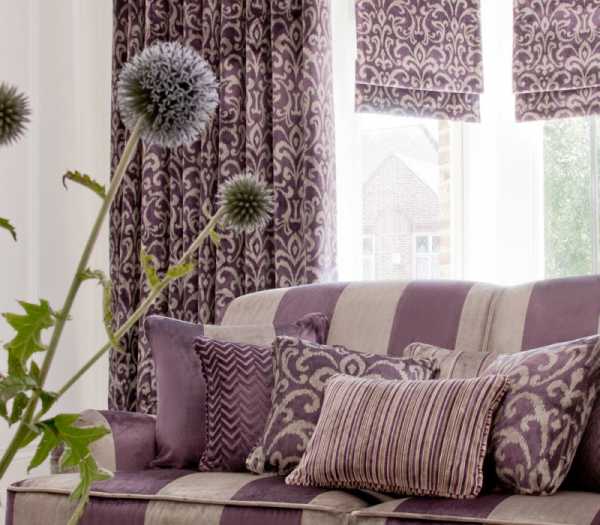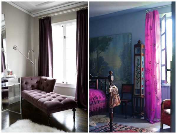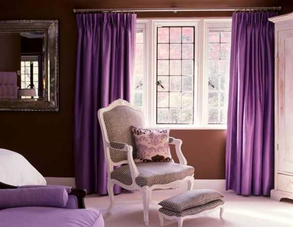 - оттенки разной интенсивности фиолетового цвета красиво смотрятся в узорах портьер;