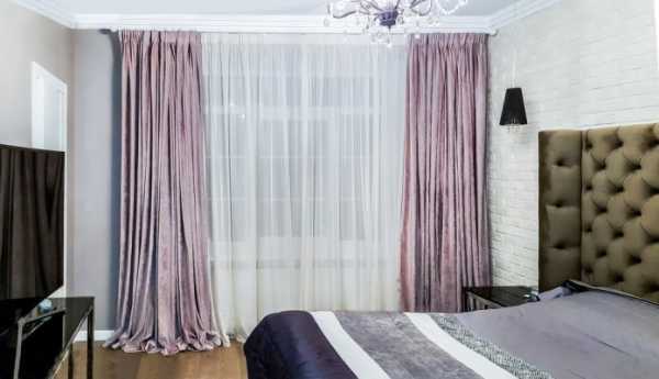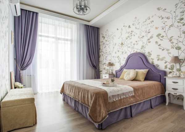 Подойдет и сиреневая штора в спальню, выполненная из бархата, которая как бы спускается к полу нежными складками. В спальной цвет штор дополняется покрывалом такого же цвета на спальное ложе.