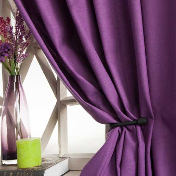 Фиолетовые однотонные занавески универсально решение для любого интерьера. Прямой крой визуально вытянет комнату. Оригинальный пошив украсит спальню и классическую гостиную.