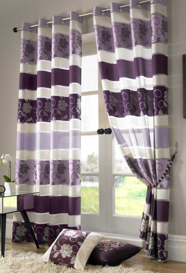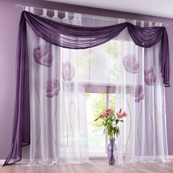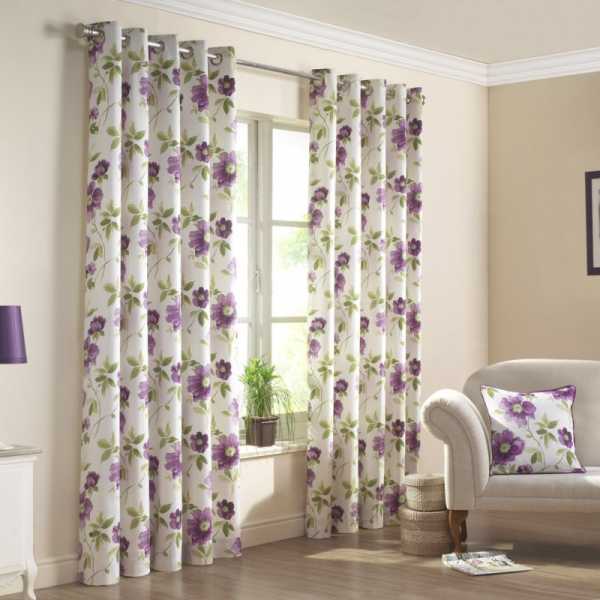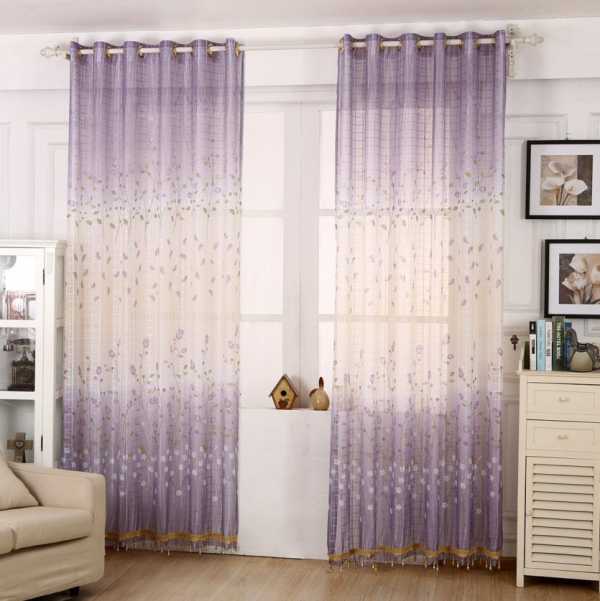 Разнообразные рисунки отображают стилистику интерьера. Изображение цветов на шторах глубокого фиолетового оттенка придаст интерьеру изюминку. Нежно-фиолетовые цветы на светлой вуали будут красиво смотреться на свету.