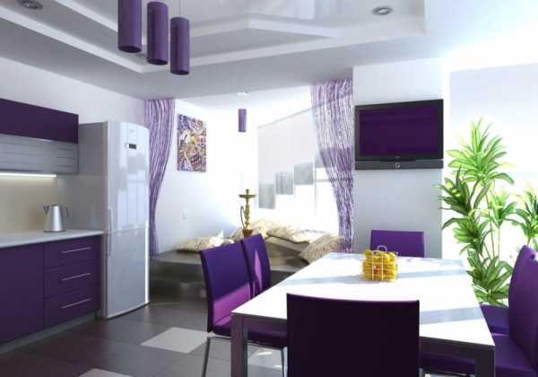 Фиолетовый цвет имеет много оттенков, играя на контрасте и фактуре легко создать неординарный и интересный интерьер.