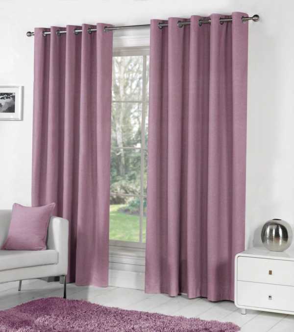 Занавески оттенка сирени, созданные из разных материалов, будут подходить для одних функциональных комнат и совсем не подходить для других.
