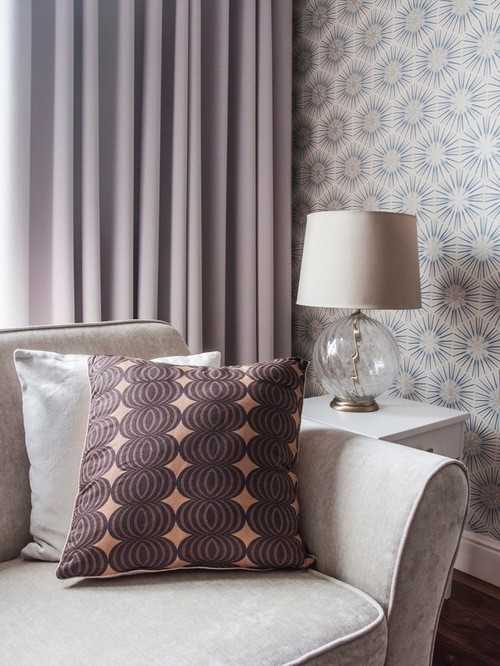 Подбирать шторы к фиолетовым обоям также следует, учитывая насыщенность и глубину основного тона, чтобы не перегрузить интерьер.