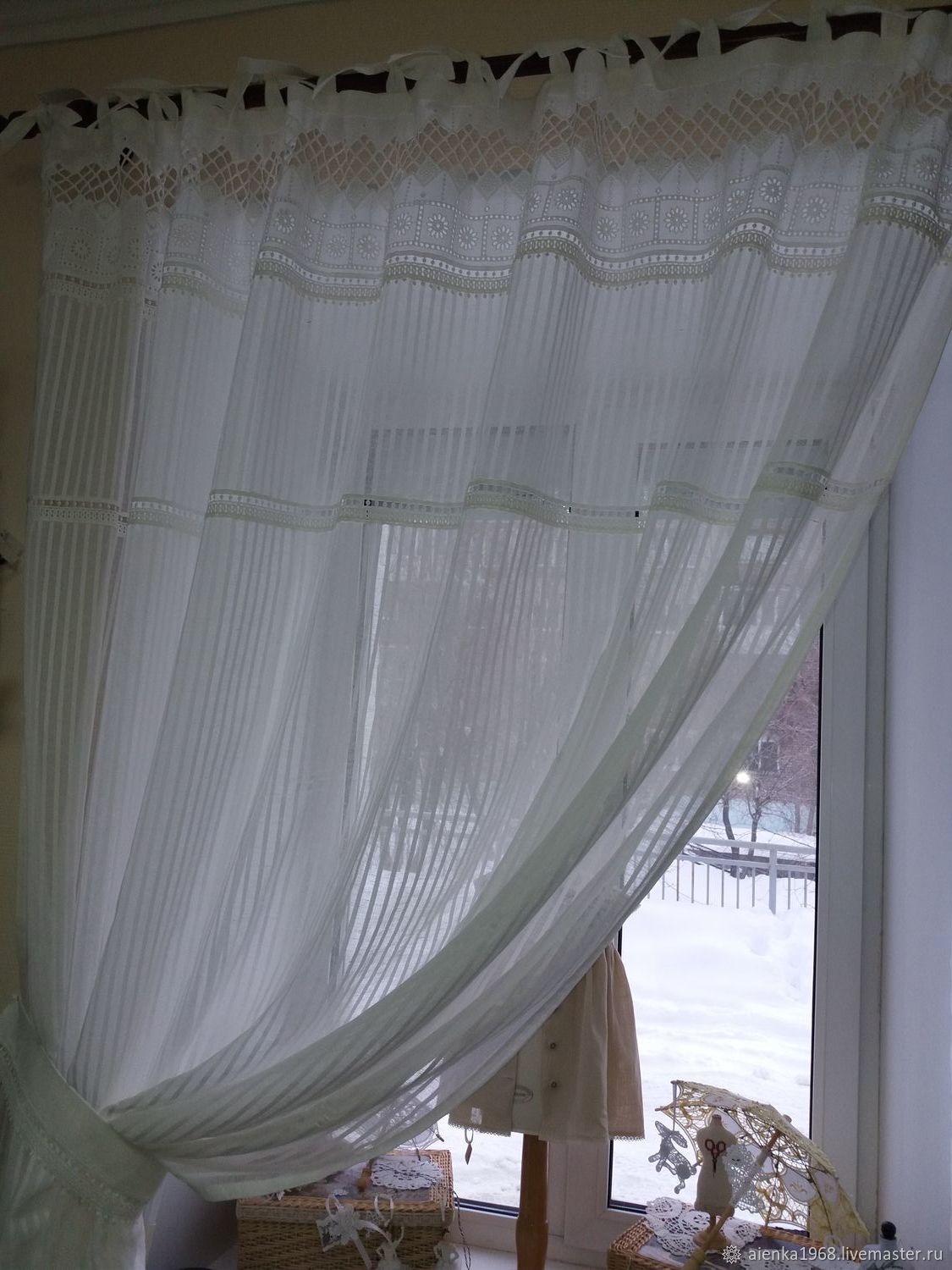 - Кусок ткани, по размеру окна, с учетом припуска (около 2-3см) и утяжелителей вверху и внизу (около 10-15см).
