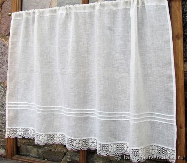- Гардина – мягкий и деликатный занавес, обычно из тюля или органзы. Льняные гардины чаще всего изготавливаются из батиста.
