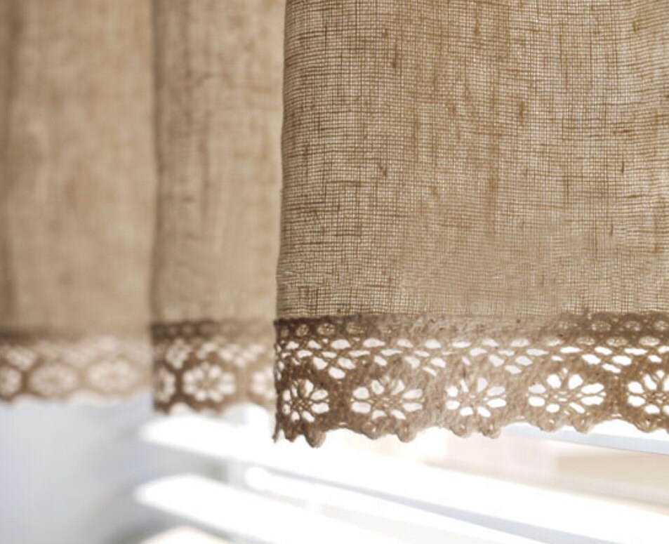 Шторы из мешковины и кружева