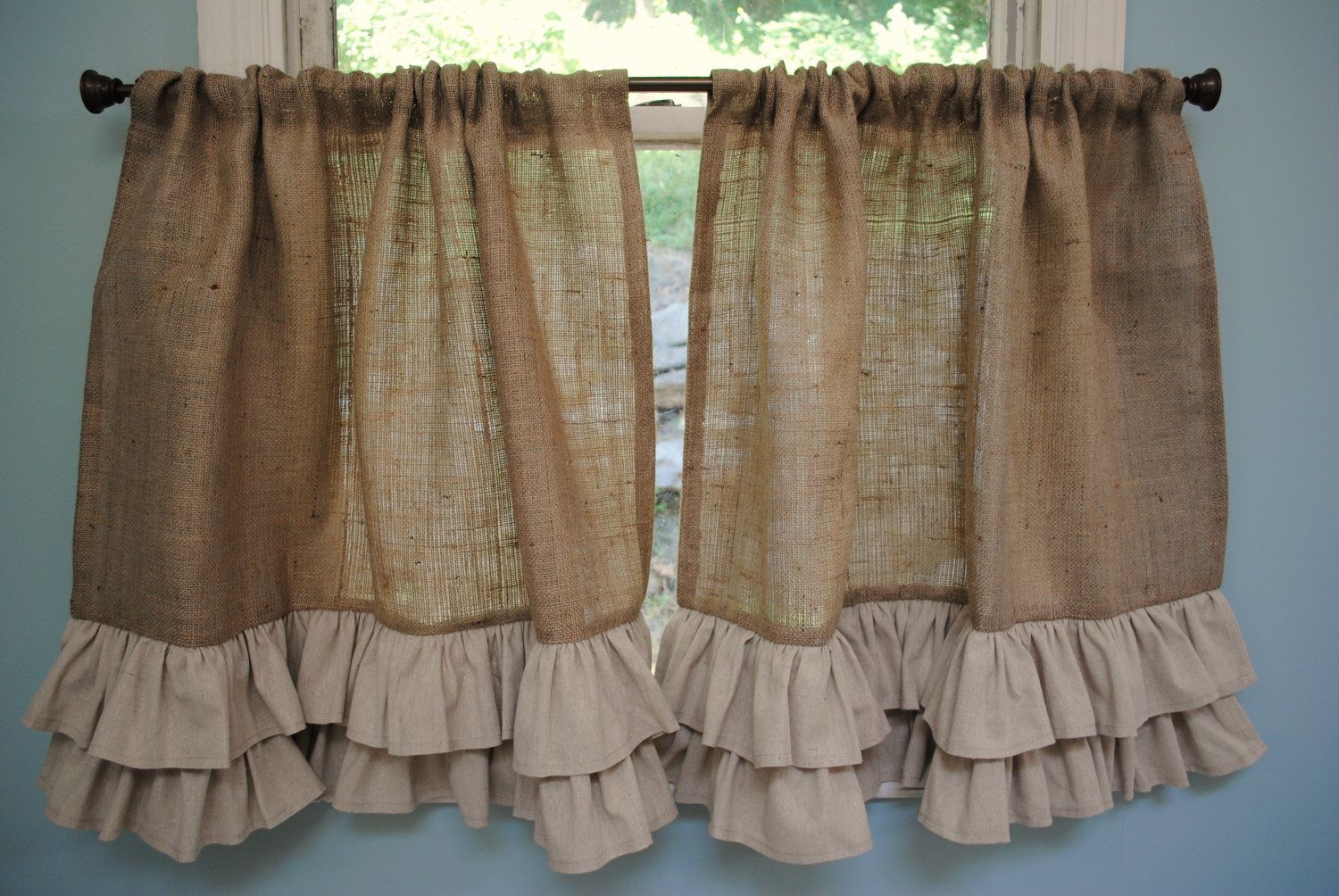 Занавеска из мешковины с рюшами