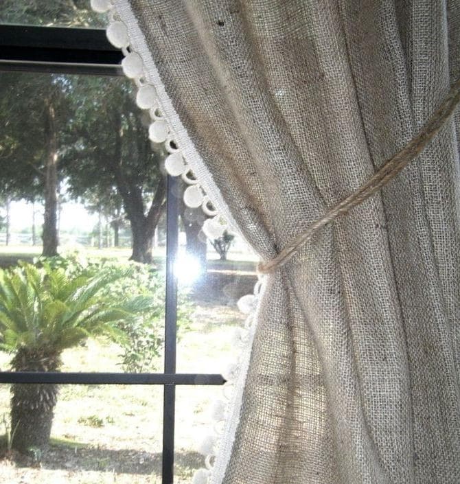 16. Шторы из мешковины с бахромой