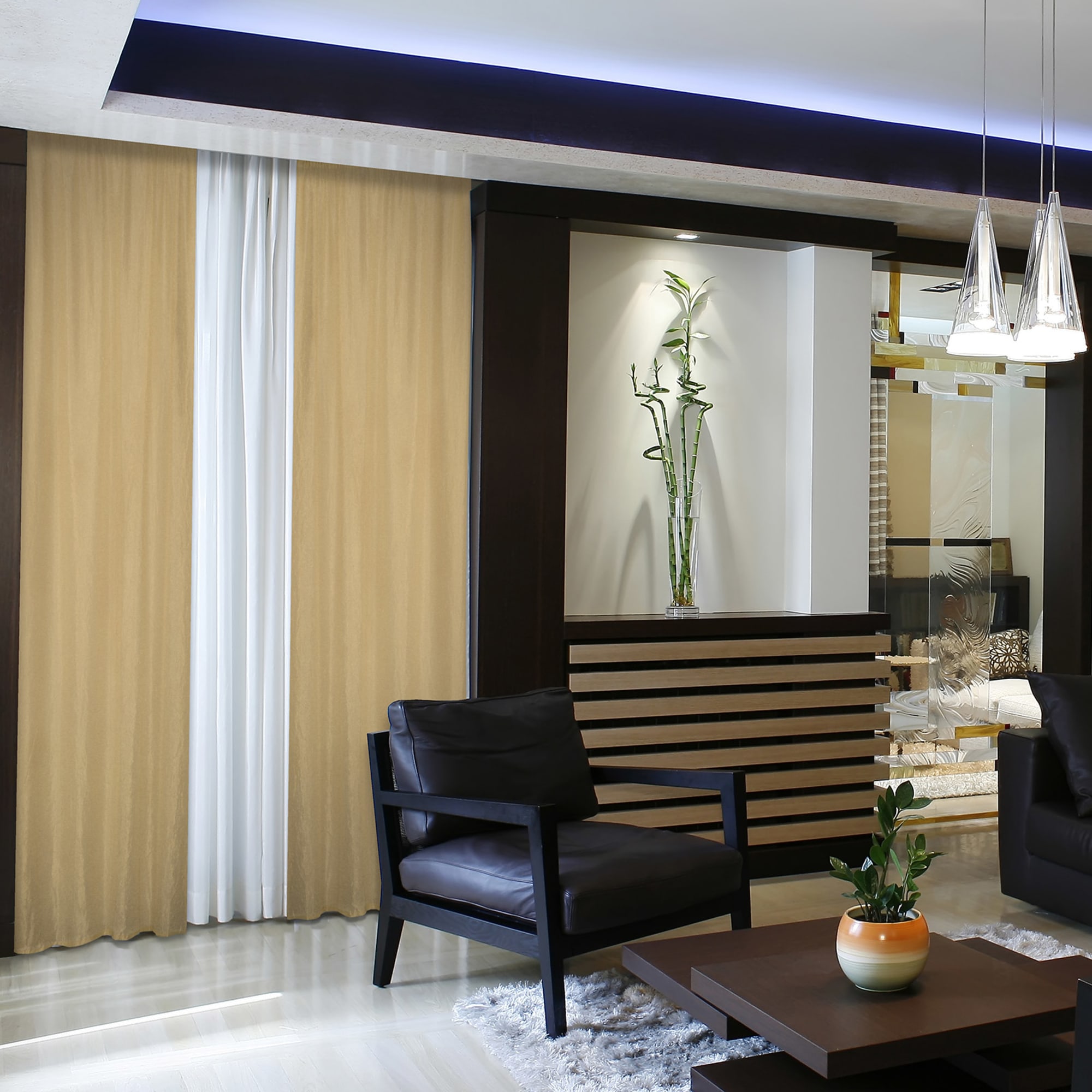 Эти повседневные текстурированные шторы с люверсами представляют собой отдельные панели с двумя наборами цветов. Это легко, а также придает солнечный вид жилому пространству.