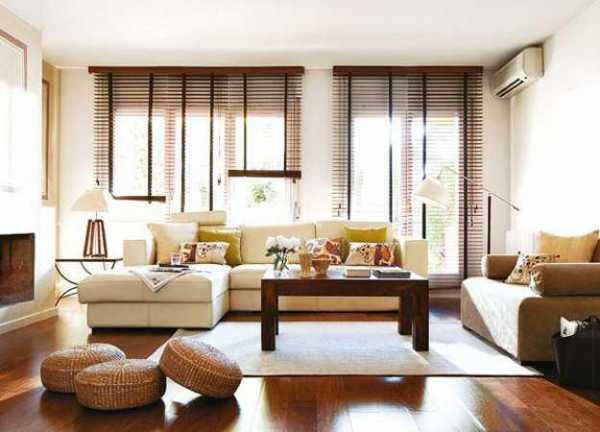 Что касается жалюзи, то для оформления гостиной или зала больше подойдут изделия вертикального типа из тканей, бамбука, пластика или дерева. Длину регулируют, так же, как и ширину ламелей. Удобство конструкции заключается в механизме работы. Выход на балкон легко открывается, стоит отодвинуть жалюзи в сторону. Конструкции простые в уходе, практичные, надежно защищают от солнца и являются полноценным завершением интерьерной картины помещения.