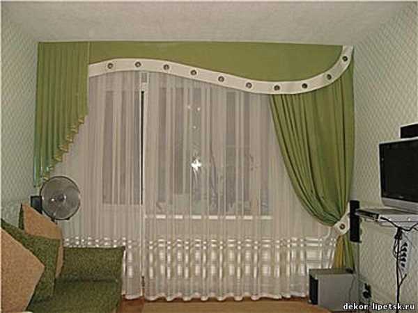 Идеальным решением будут шторы с австрийской ноткой, Или полупрозрачная композиция занавесок с мягким или жестким ламбрекеном и контрастными портьерами.