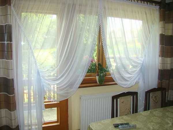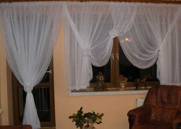 Изделия удачно сочетаются с разными элементами декора, начиная от классических — фото ламбрекенов в композиции с кисеей это лишь подтверждают и заканчивая новомодными — бабочками, цветами, изящными брошками.