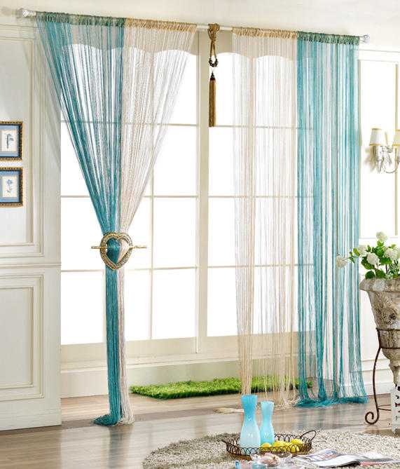 Нитяные занавески — идеи для гостиной, спальни кухни
