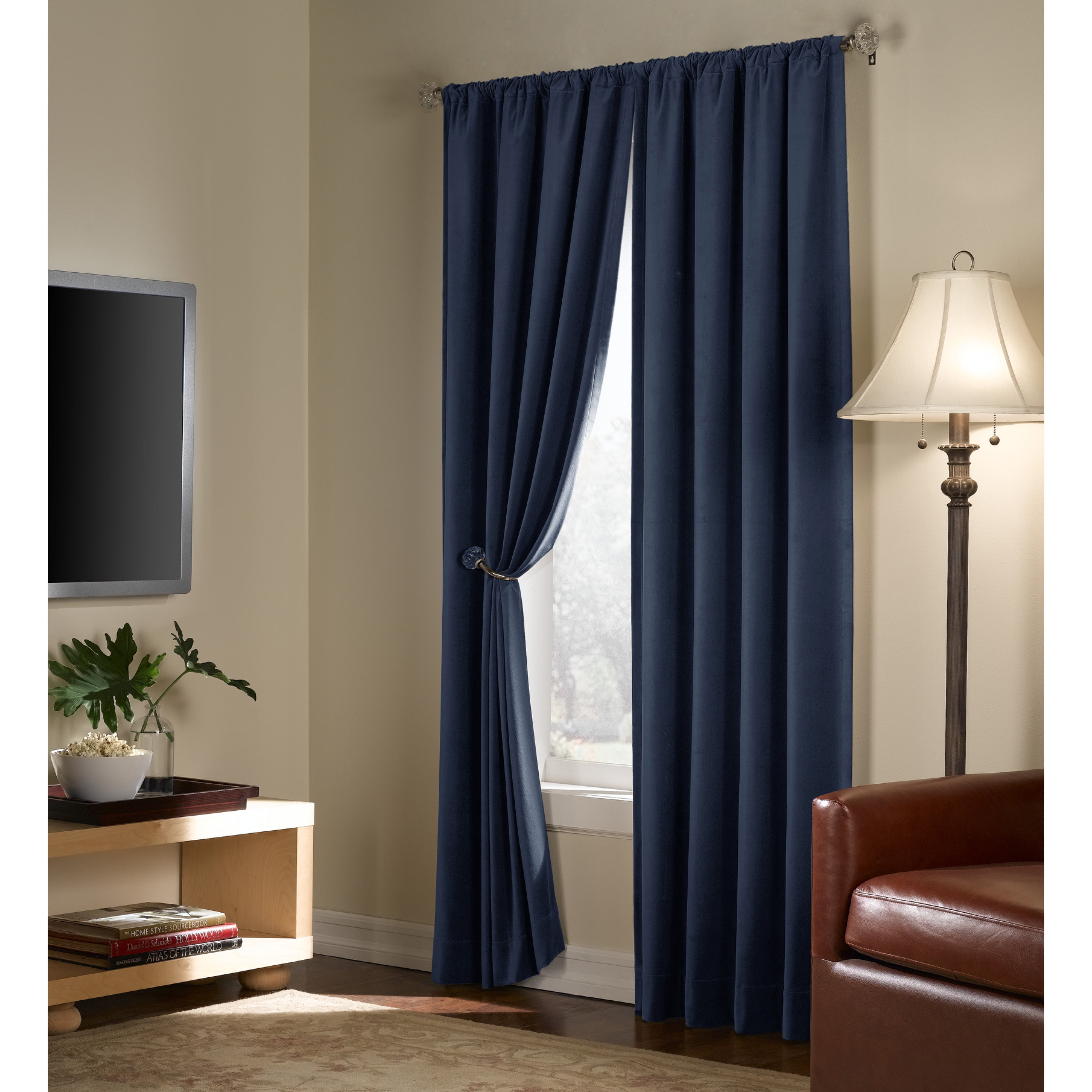 Если же карниз навесной, он должен быть длиннее оконного проема примерно на 40-50 см, как на фото штор для спален.