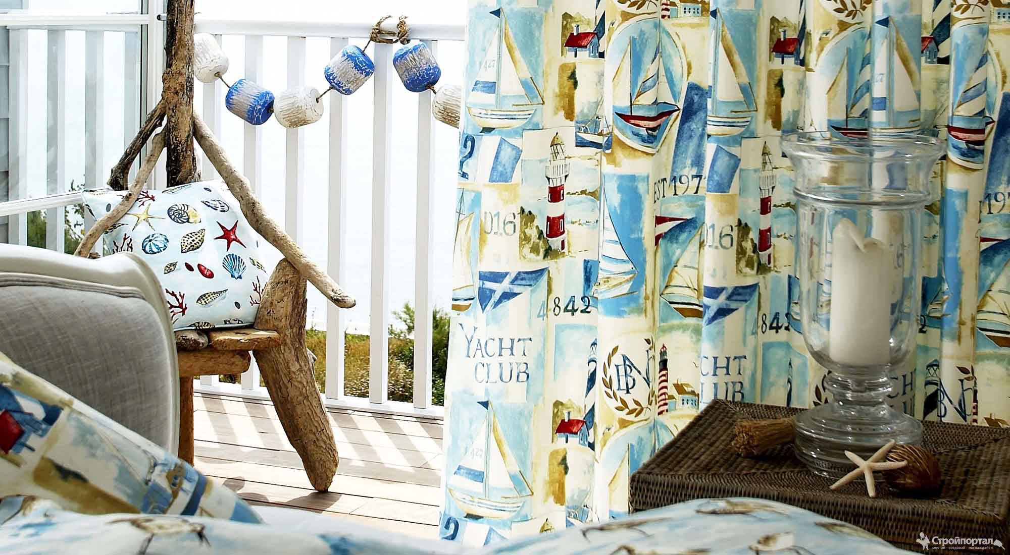 Фото морских штор в интерьере