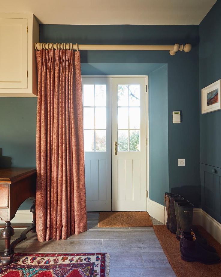 Источник: Соцсети дизайнера Людмилы Данилевич- Цена. Есть много способов декорировать межкомнатный проход. Самый очевидный — установить дверь. Если же речь об открытом портале, его можно оформить деревом, камнем или лепниной. Но все эти решения достаточно дороги. По сравнению с ними декор текстилем гораздо более экономичен. Достаточно приобрести карниз и, собственно, саму занавеску.