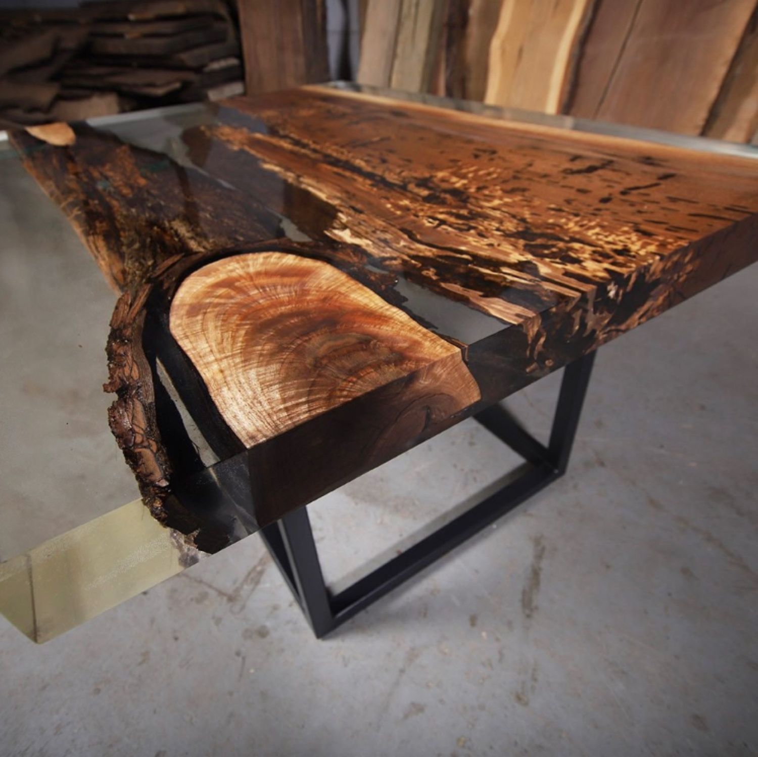 Стол из эпоксидной смолы и дерева не обязательно делать только из дорогого слэба.