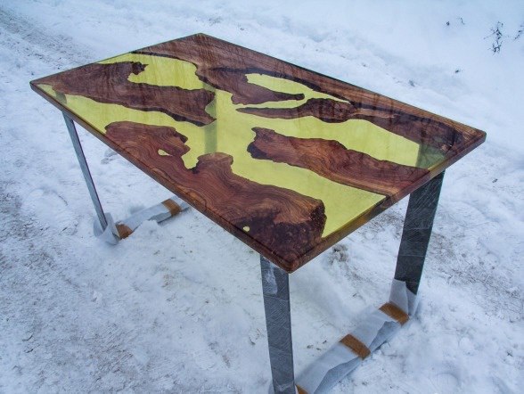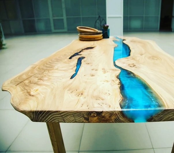 Такой вот стол из эпоксидной смолы сделан из двух досок карагача (вяза)