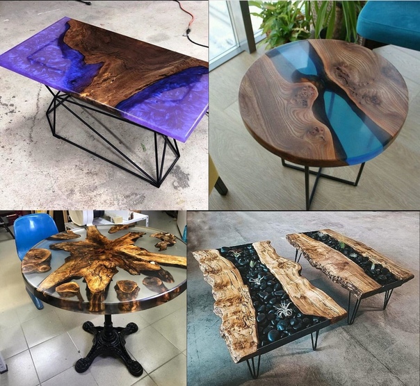 Сделать стол из спилов дерева и эпоксидной смолы можно в разных видах
