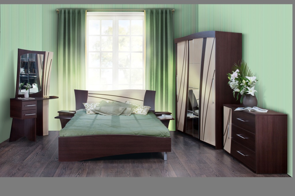 Венге, в свою очередь, органично сочетается со всеми оттенками зеленого, песочным, бежевым, серым.