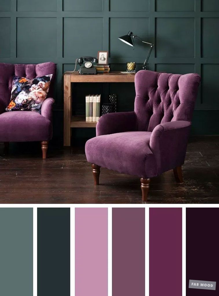 На основании игры тонов и полутонов это сочетание может колебаться от спокойного и тонкого до смелого и веселого. Взгляните на эти примеры сочетания зеленого (салатового) и фиолетового (пурпурного) в различных интерьерах.