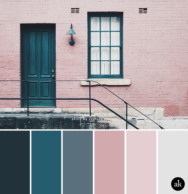 Сочетание серо-голубого и розового цветовСочетание синего и красного цветов
