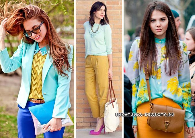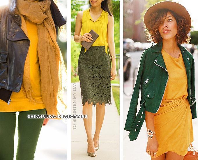 Нет ничего более свежего, чем запах свежескошенной травы теплым летним днем, и это цветовое сочетание как раз то, что нужно. Свежий и чистый, зеленый и желтый прекрасно смотрятся на большинстве типов кожи. Если у вас теплые тона, сосредоточьтесь на горчичном, хаки и темно-зеленом. Если у вас холодный тон, сделайте наряд более четким, добавив ярко-желтые и переливающиеся зеленые оттенки.