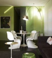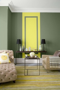 Что бы придать значимость месту, можно на эту же поверхность разместить картину с абстрактным рисунком, поддерживающую цвета этой зоны. Для комфорта на пол стоит положить ковер с высоким ворсом, оливково-зеленого цвета, возможно более приглушенного оттенка. Добавить света и позитива вам поможет соседняя стена (желательно с окнами) выкрашенная в желто-оранжевый цвет. На окна лучше разместить жалюзи или рулонные шторы белого цвета.ПОСМОТРЕТЬ СОЧЕТАНИЯ С ПОХОЖИМИ ОТТЕНКАМИ (нажать на цвет)