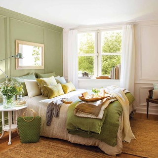Оливково-зеленый цвет хорош для спальни, гостиной, столовой, кухни, в меньшей мере для ванны и туалета. Им хорошо оформлять зоны отдыха, как раз такую мы и рассмотрим.