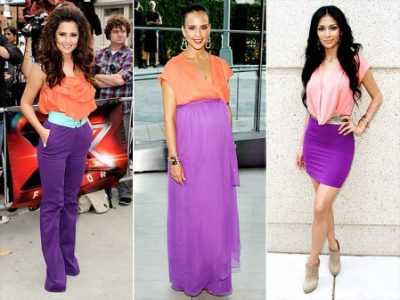 Все перечисленные варианты яркие и дополняющие друг друга. Когда есть желание добавить в эти наряды яркие детали третьего оттенка, стоит проявить бдительность, чтобы не испортить образ.