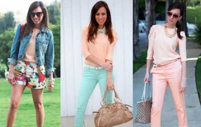 Сочетание в одежде персика с пастельными тонами подходит во всех случаях. Однако в отдельности важно обсудить определенные из них.