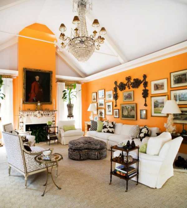 Ярко-персиковый цвет стен в интерьере