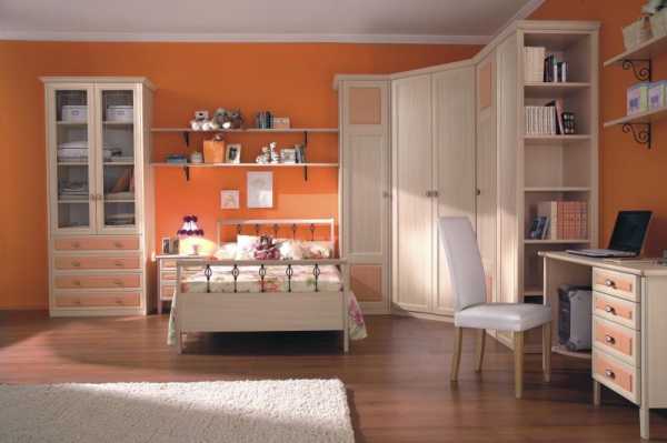 Персиковый цвет стен в интерьере детской комнаты
