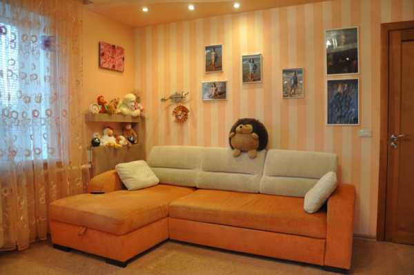 Интерьер в персиковом цвете, фото в интернете тому подтверждение, будет выглядеть интересно в девчачьей комнате. Лучше всего выбирать обои персикового цвета с кругами, разной по толщине полосками, и прочими геометрическими фигурами.