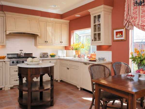 Персиковый цвет в интерьере кухни
