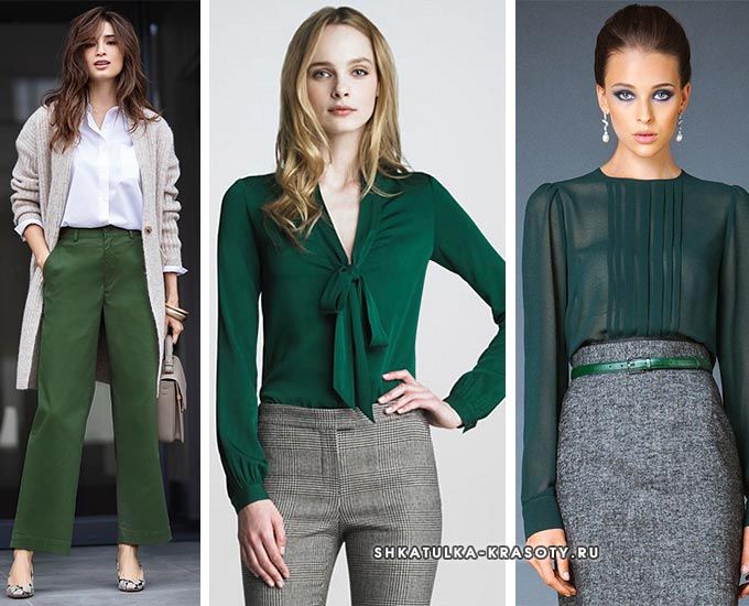 В тренде также бутылочный и малахитовый. Их вариации с серым часто используют для создания деловых луков многие бизнес-леди.