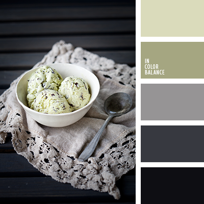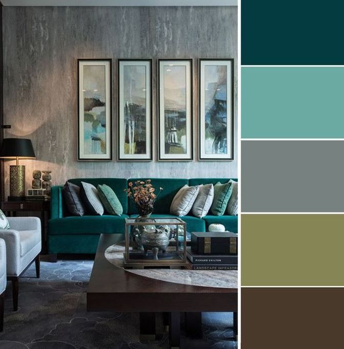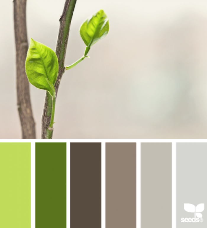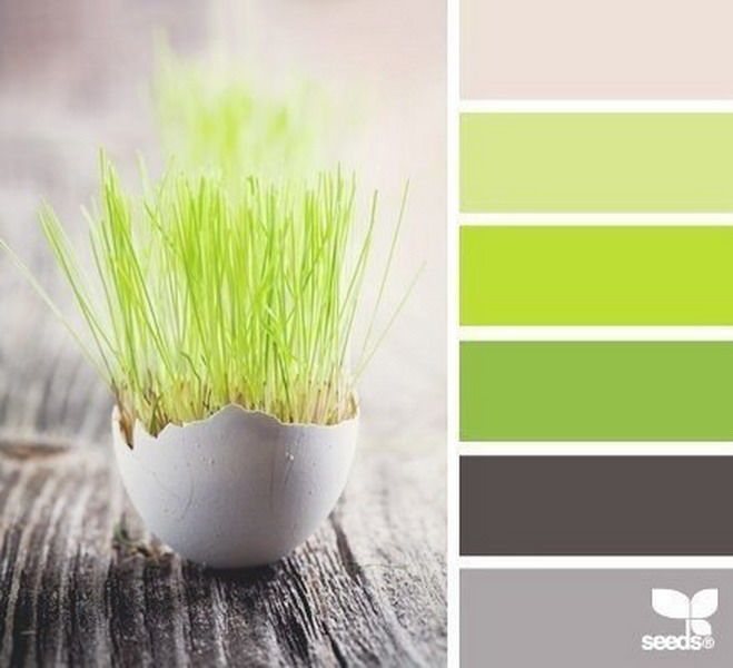 Так как оттенков зеленого – множество и от любого из них можно построить серо-зеленый колорит, то и палитра описываемого тона будет очень широкая.