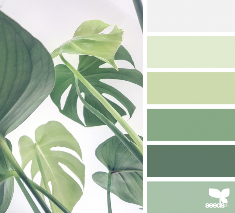 Серо-зеленый и теплый зеленый сочетаются, создавая градиент от теплого к холодному, находясь в пределах одного тона. Такая композиция дает ощущение густой зелени, за счет ощущения светотени. Комбинация может быть как самостоятельной, так и фоном для теплых красок. Палитра включает в себя бледно-зеленый, авокадо, шартрез, оливковый, болотный.