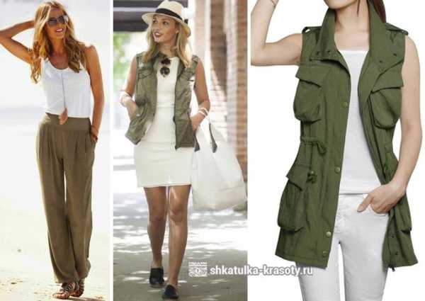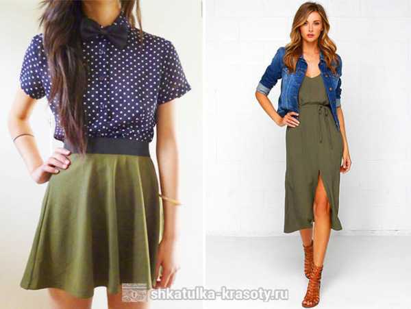 Первая ассоциация с этим цветом — стиль «Милитари», который так полюбился многим девушкам. Главное его преимущество — универсальность и нейтральность, а это значит, что он подходит всем. Главное — правильно сочетать его с другими цветами, ведь от этого будет зависеть то впечатление, которое вы хотите произвести на окружающих.