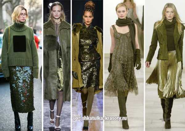 Оливковая палитра подходит и для праздничных, и для повседневных нарядов. Несмотря на универсальность, оттенок не смотрится скучным, и используется как базовый цвет в гардеробе.
