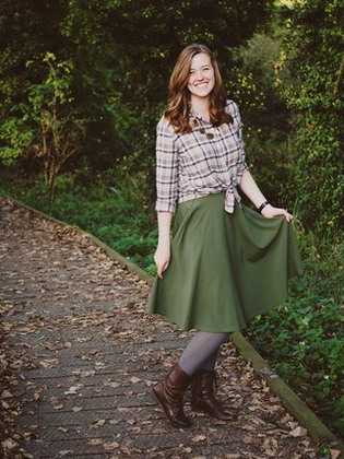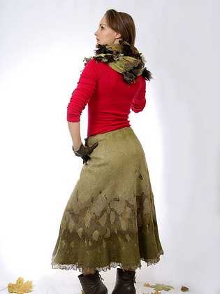 Оливковые штаны предпочтительны для лета и весны. Вместо брюк можно выбрать юбку – свободные фасоны сгладят ассоциации со стилем милитари. В сочетании с блузой и лодочками лавандового тона наряд смотрится стильно и романтично.
