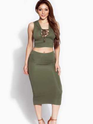 Чтобы выглядеть стильно, составьте тотал-лук в оливковой гамме. Подберите комбинезон или платье оливкового цвета. Дополнить аксессуарами и обувью нейтрального тона, например, бежевыми лодочками.