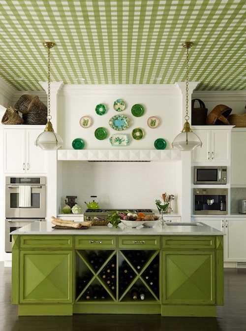 Давайте посмотрим, как использовать оливковый цвет в интерьере кухни. Обычно на кухонном пространстве встречается один из двух видов комбинирования цвета оливы с другими (а в некоторых случаях они даже могут быть объединены в одном помещении):