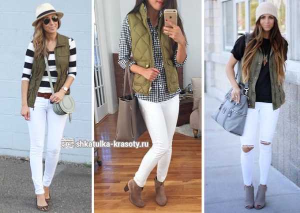 Модный и современный зелено-оливковый можно поставить в один ряд с бронзовым и сепией, как одними из самых стильных оттенков. Сочетание оливкового в одежде прекрасно подходит для осеннего и зимнего сезонов, очень удобный, и вы можете выбрать джинсы в качестве подходящего варианта одежды. Верх следует сделать как можно ярче.