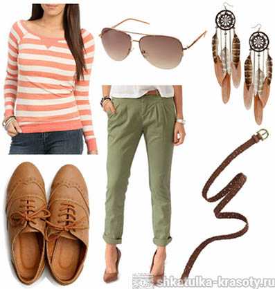 Учитывайте фасон одежды. Брюки спортивного кроя напоминают военную форму. В этом случае важно не переусердствовать, чтобы не превратиться в солдата – верх и аксессуары выбирайте более женственные или нейтральные.