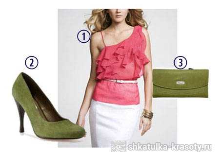 Для составления романтичного лука отдайте главную роль пастельным персиковой, пыльно-розовой, лососевой гамме. Цвет оливы используйте в виде обуви или аксессуаров.