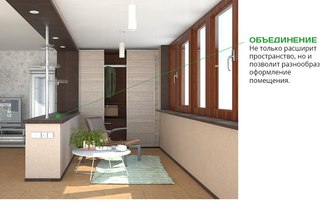 Объединение балкона с комнатой имеет следующие преимущества:
