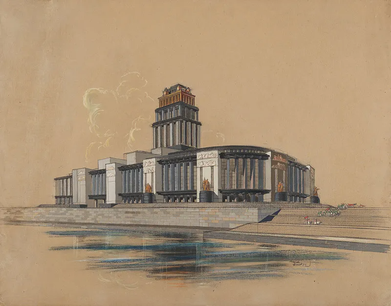 Именно этот стилевой подход характеризовал также советские павильоны на Всемирных выставках 1937 г. в Париже и 1939 г. В Нью-Йорке (оба по проектам Б.М. Иофана, основного автора Дворца Советов, а второй с участием К.С. Алабяна, чей, совместно с В.М. Симбирцевым театр Красной Армии несомненно связан с Арт Деко) и многие постройки Всесоюзной сельскохозяйственной выставки в Москве (1930), где приемы Арт Деко оригинально переплетались с национальными архитектурными и декоративно-орнаментальными мотивами.