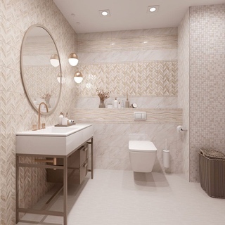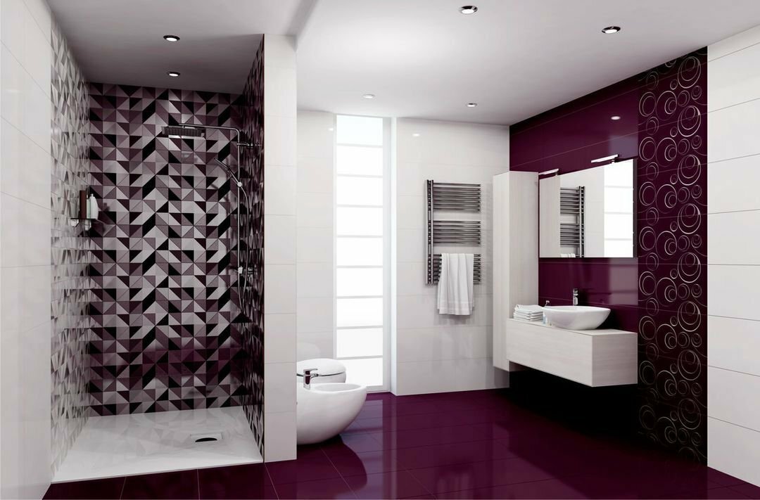 Благодаря раскладке плитки, можно воплотить самые различные интерьерные концепты и сформировать уникальный дизайн, как в большой, так и маленькой ванной комнате.