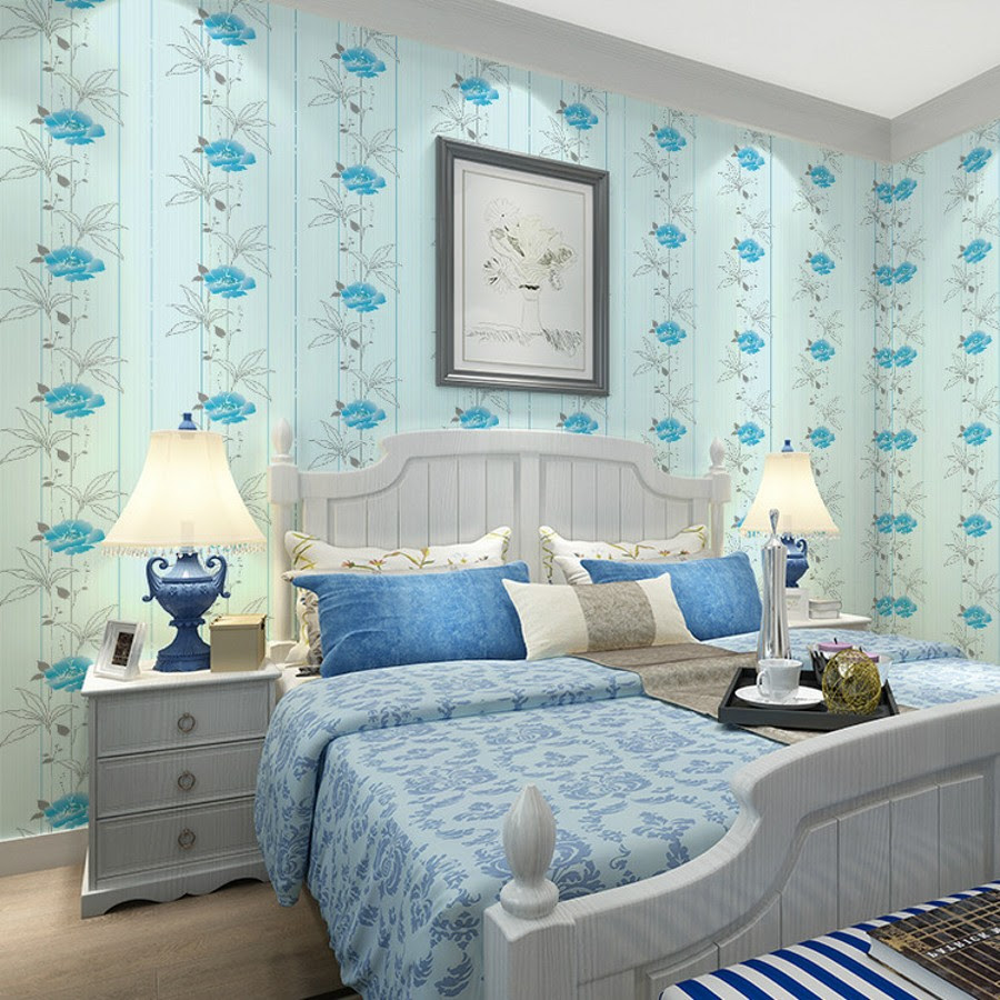 Спальня, как основное место отдыха, не должна удивлять своей оригинальностью, в большей степени она отвечает за отдых и расслабление. Поэтому в данное прощение лучше выбрать обои голубой, нежно-розовой или персиковой гаммы.